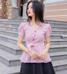 ✔ Sản phẩm Áo caro đắp chéo nơ eo có 3 size S - M - L