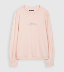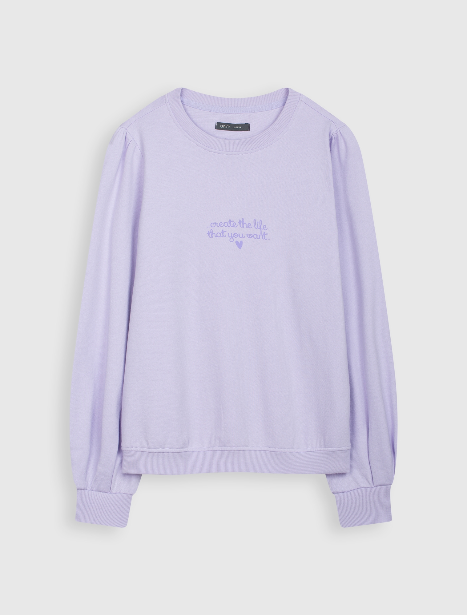 Dáng regular, tay rộng hơi phồng, cổ tròn