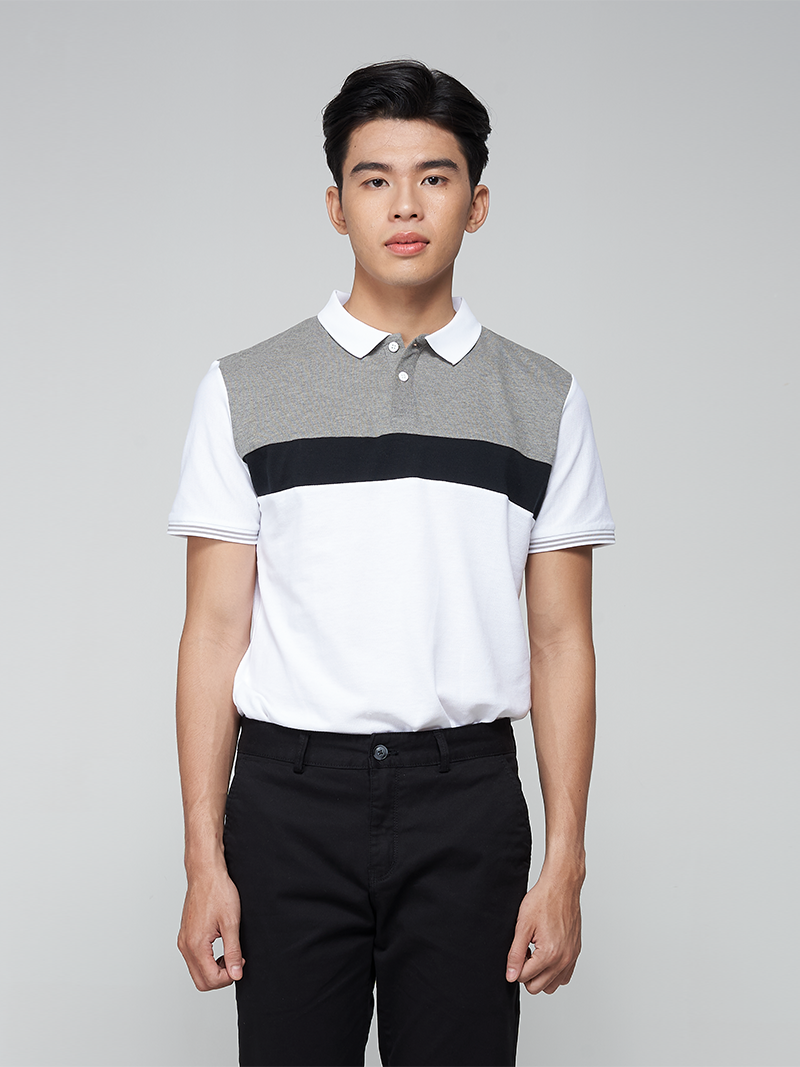 ÁO POLO PHỐI BA LỚP MÀU PO013 MÀU TRẮNG