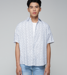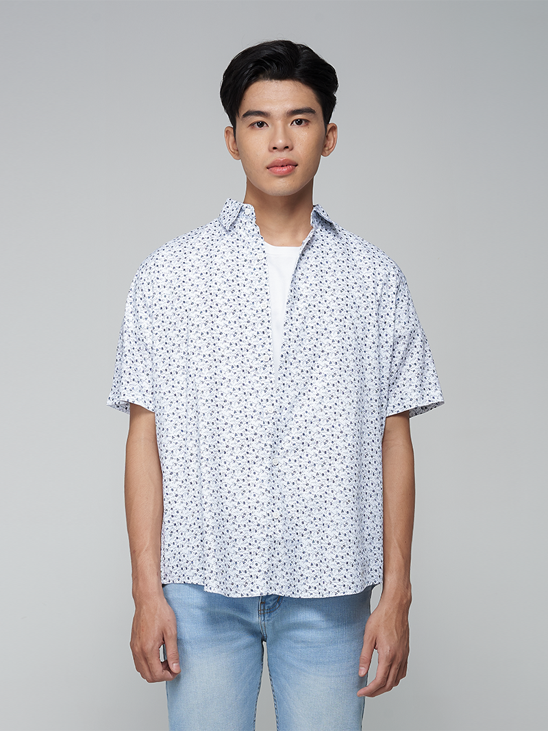 ÁO SƠ MI NGẮN TAY OXFORD IN HOA ASM029 MÀU TRẮNG