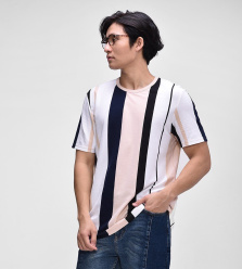 Áo Thun Nam Tay Ngắn Phối Kẻ Sọc - AT201333 ( Kẻ Hồng )