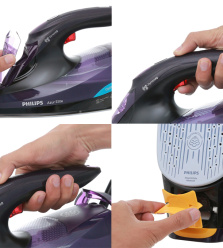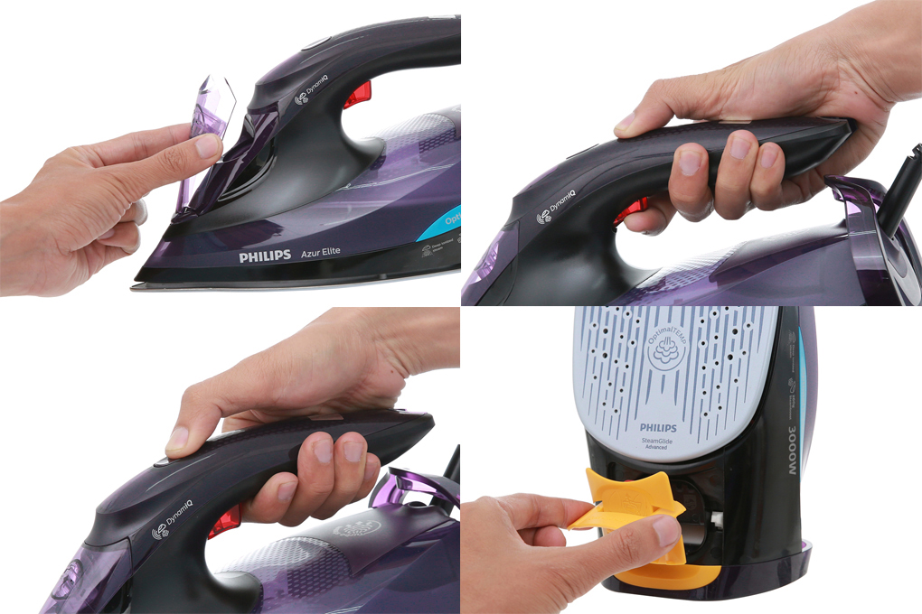 - Tiện ích:Auto shutoff ngắt điện tự động (30s nằm ngang ngắt, 8 phút để đứng ngắt ), Tự làm sạch - chống đóng cặn, Cảm biến hơi phun tự động, Phun hơi nước IONIC, Nút trượt xả cặn, Chống vôi hoá