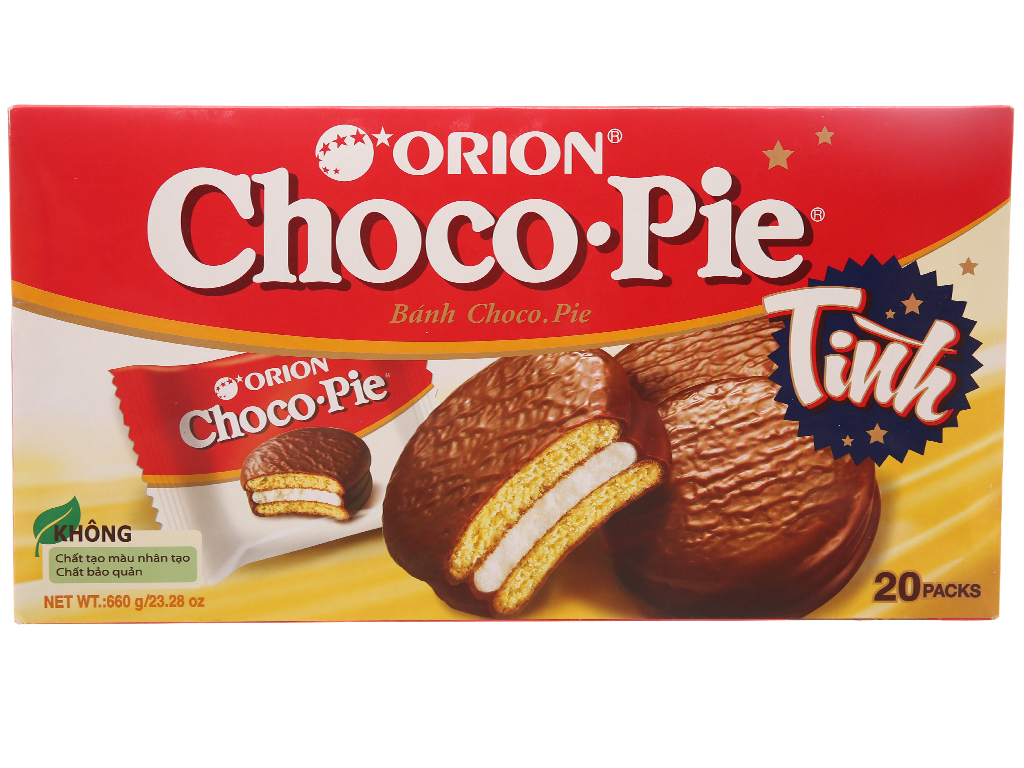 Bột mì, đường, si rô glucose, shortening thực vật, chất béo thực vật không hydro hoá, bột ca cao, sữa bột nguyên kem, trứng, chất tạo xốp,...