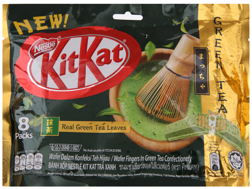 Chất béo thực vật và dầu thực vật (nhân cây cọ, cây cọ, illipe, cây hạt mỡ, sal, xoài, kokum), sữa bột (sữa bò), đường, bột mì, bánh quy (bột mì, đường, dầu cọ, chất nhũ hoá lecithin 322(i)), muối), maltodextrin, bột trà xanh (2,1%) và lá trà xanh, siro glucose, chất nhũ hoá (322(i), 476), chất ổn định (500(ii), 170(i)), muối, hương vani tự nhiên.