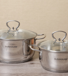 Bộ 2 nồi inox 5 đáy nắp kính 16 cm, 20 cm Sunhouse SHG2502M