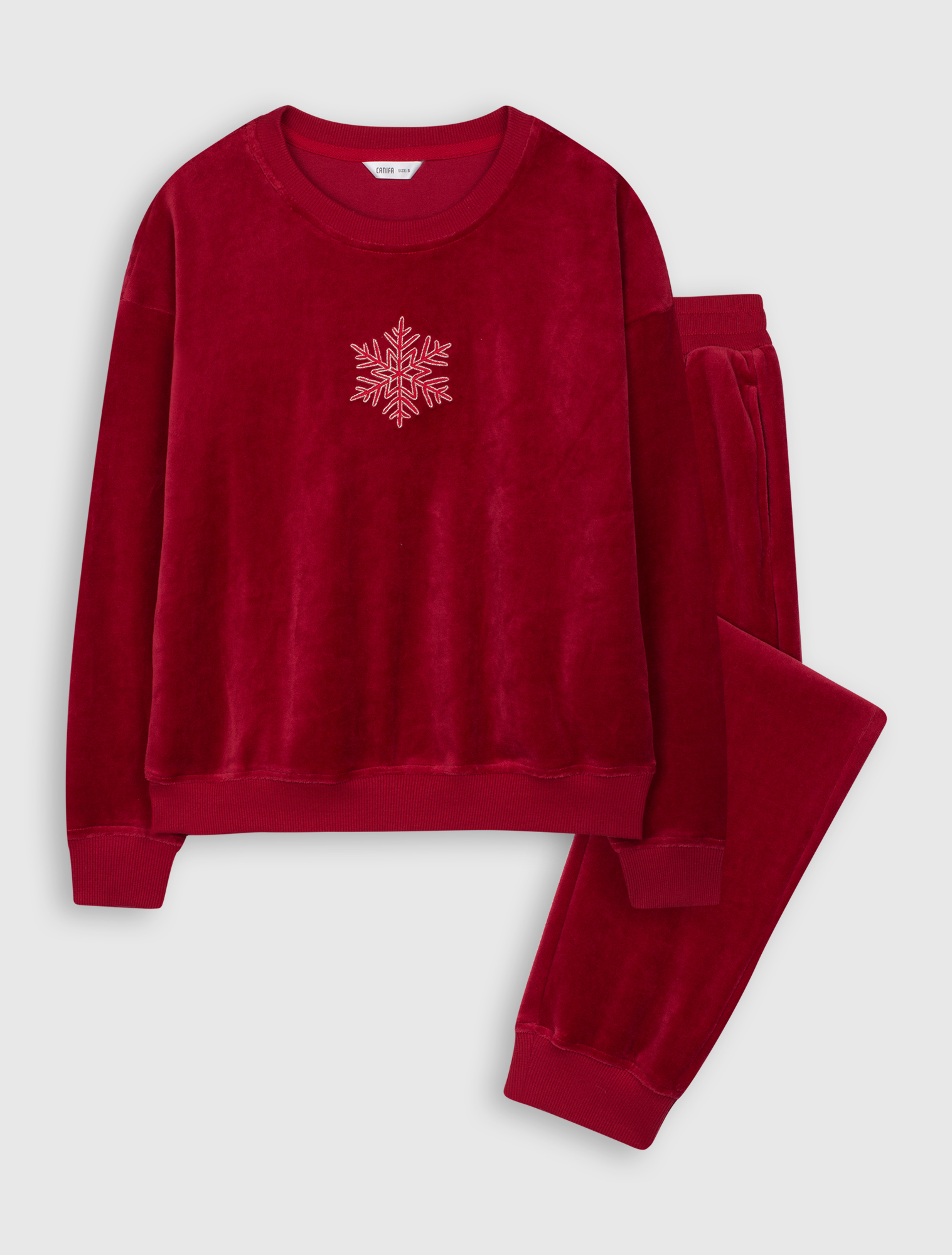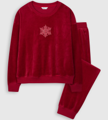 Bộ quần áo nhung, thêu hình trước ngực áo