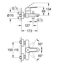 Bản vẽ kỹ thuật bộ trộn sen bồn tắm Eurostyle Cosmo Grohe 33591002