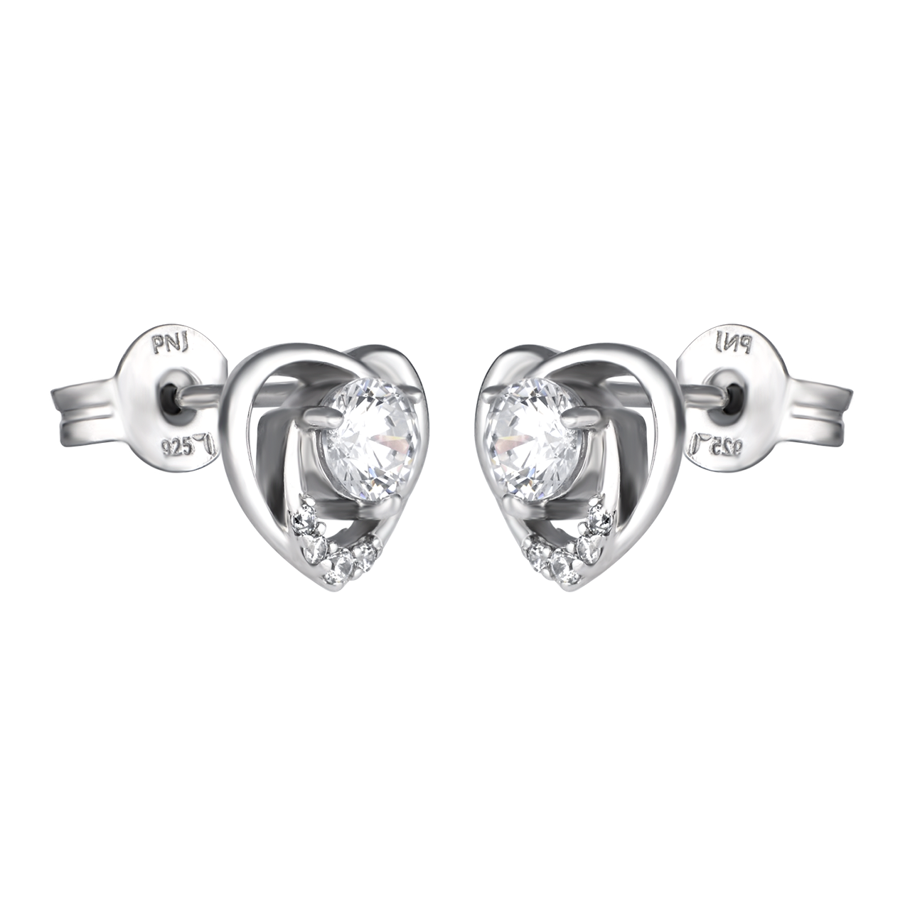 Bông tai bạc đính đá PNJSilver hình trái tim XMXMK000114