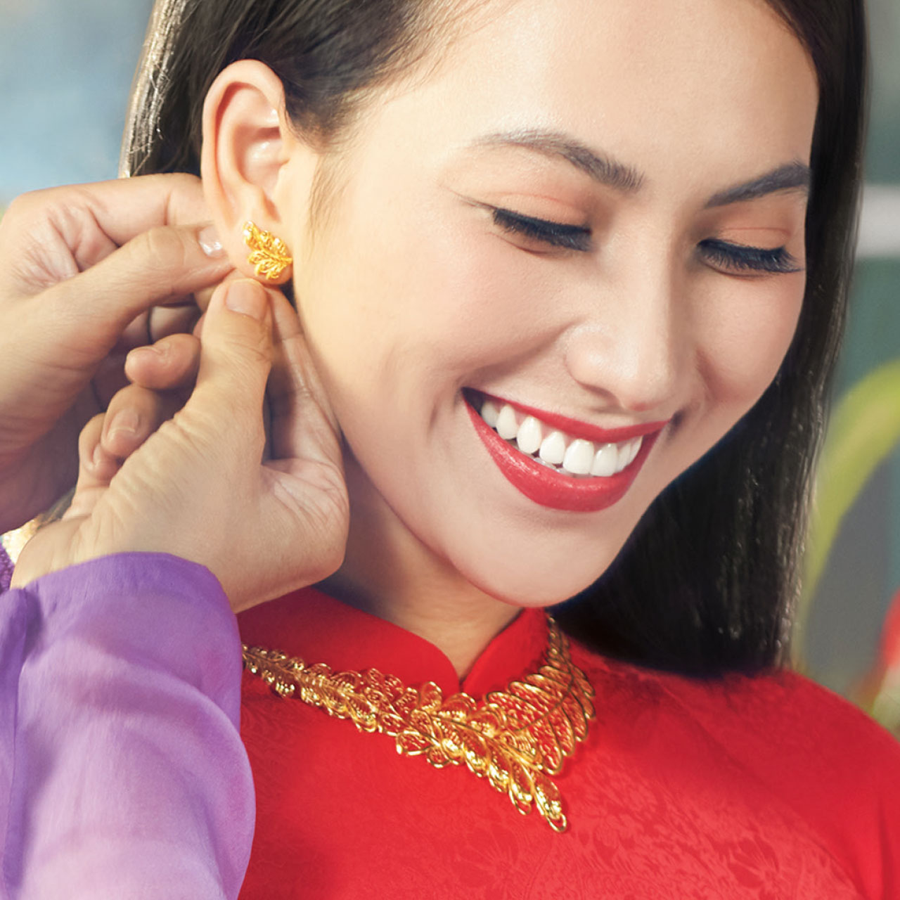 Bông tai cưới Vàng 22K PNJ Son Sắt Phu Thê 0000Y000108