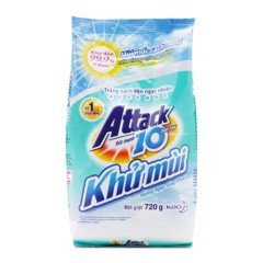 Bột giặt Attack khử mùi hương ngày sảng khoái 720g với sức mạnh giặt tẩy vượt trội, giúp bạn tiết kiệm được thời gian, không gây ô nhiễm môi trường.