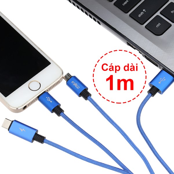 Cáp 3 đầu Lightning Type C Micro 1m eValu Spanker B Xanh Dương