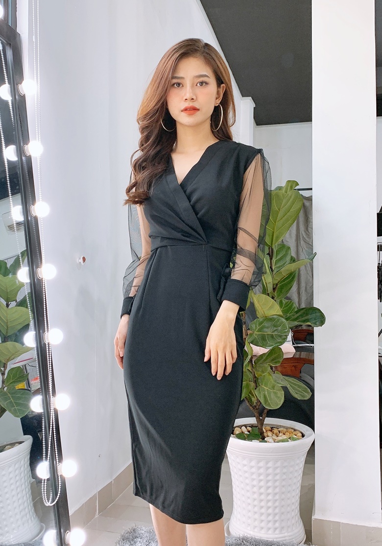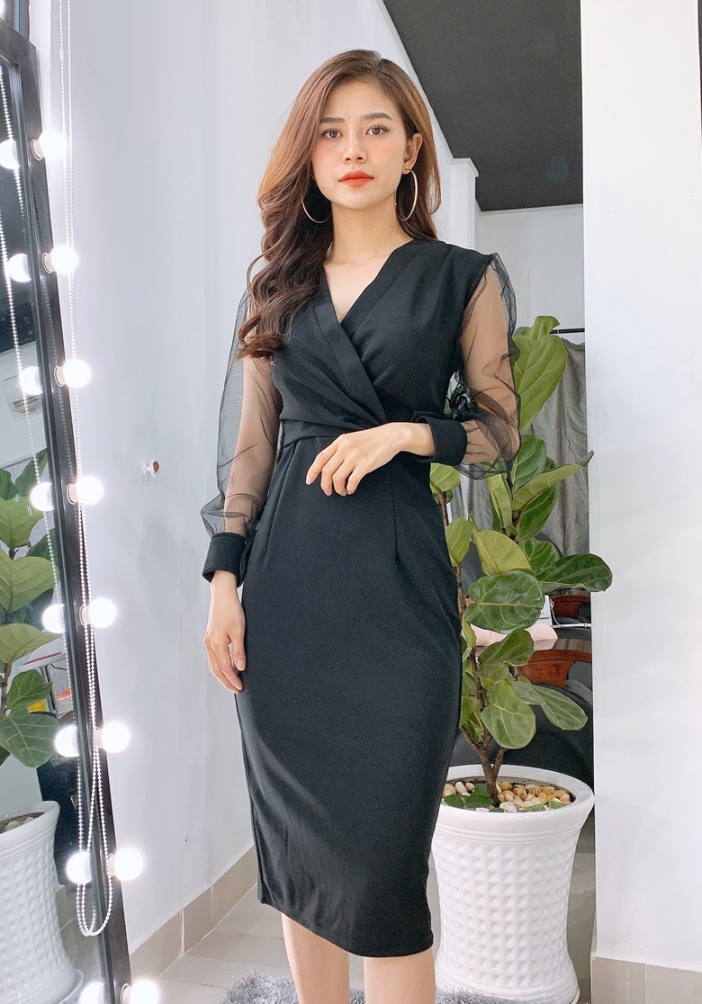✔ Sản phẩm Đầm body đắp chéo xếp eo có 3 size S - M - L