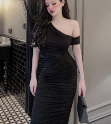 ✔ Sản phẩm Đầm body lệch vai nhún eo freesize cho các bạn gái từ 52kg trở xuống (tùy thuộc chiều cao)
