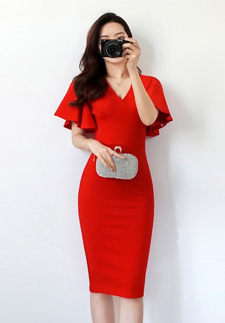 ✔ Sản phẩm Đầm body nhún ngực tay cánh tiên có 3 size M - L - XL