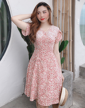 Đầm tiểu thư hoa nhí tay con cổ phối ren