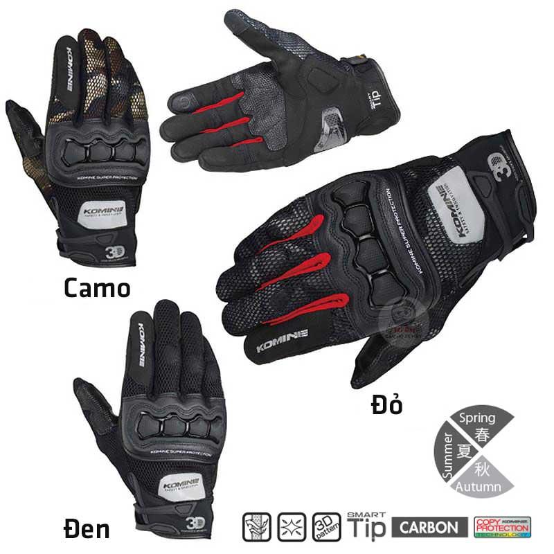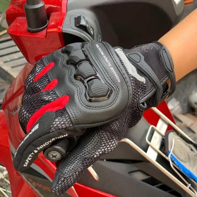 Găng tay Komine GK 215 là một đôi găng tay bảo vệ đi xe máy hoàn hảo cho những chuyến đi tour xa, phượt vào mùa hè, nắng nóng; hoặc chơi xe cào cào offroad. Bao tay Komine GK 215 có phần gù bảo vệ bằng cao su TPR đặc đảm bảo an toàn cho mặt trên bàn tay, mặt dưới có phần trượt bằng carbon cực hữu dụng khi xảy ra sự cố, hạn chế tối đa thương tích cho vùng gần cổ tay.