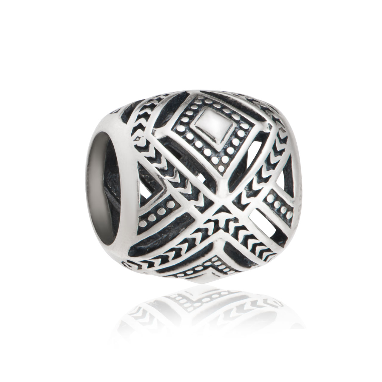 Hạt charm xỏ DIY PNJSilver hình hoa văn XMXMK060080