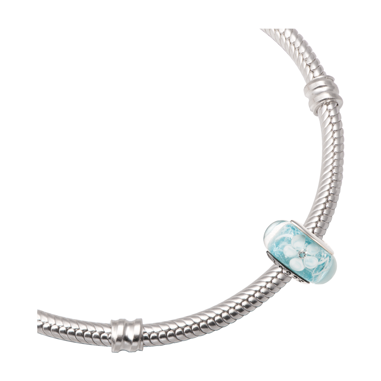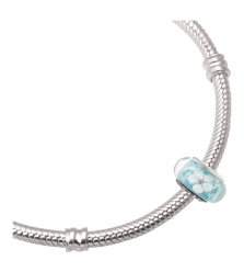 Hạt charm xỏ DIY PNJSilver hình dẹt tròn màu xanh hoa văn 0000K060169
