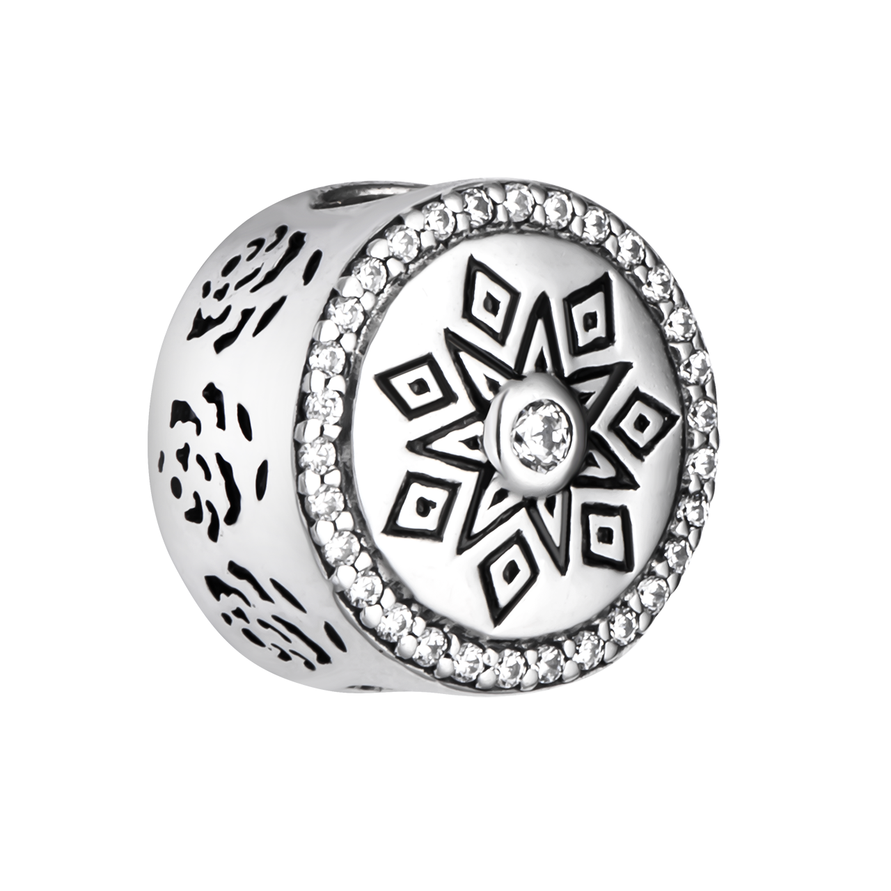 Hạt charm xỏ DIY PNJSilver hình hoa văn XMXMK060080