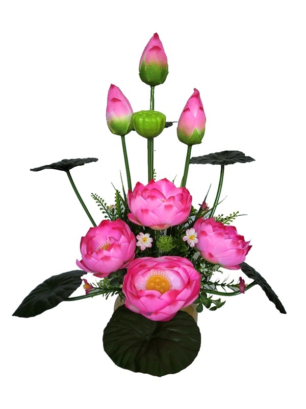 Chất liệu: Hoa, lá sen bằng chất liệu vải, thân thép bọc nhựa PVC.