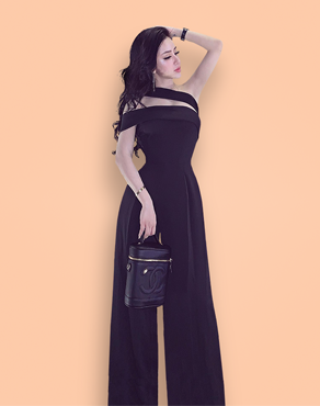 Jump dài thiết kế ống suông lệch vai duyên dáng