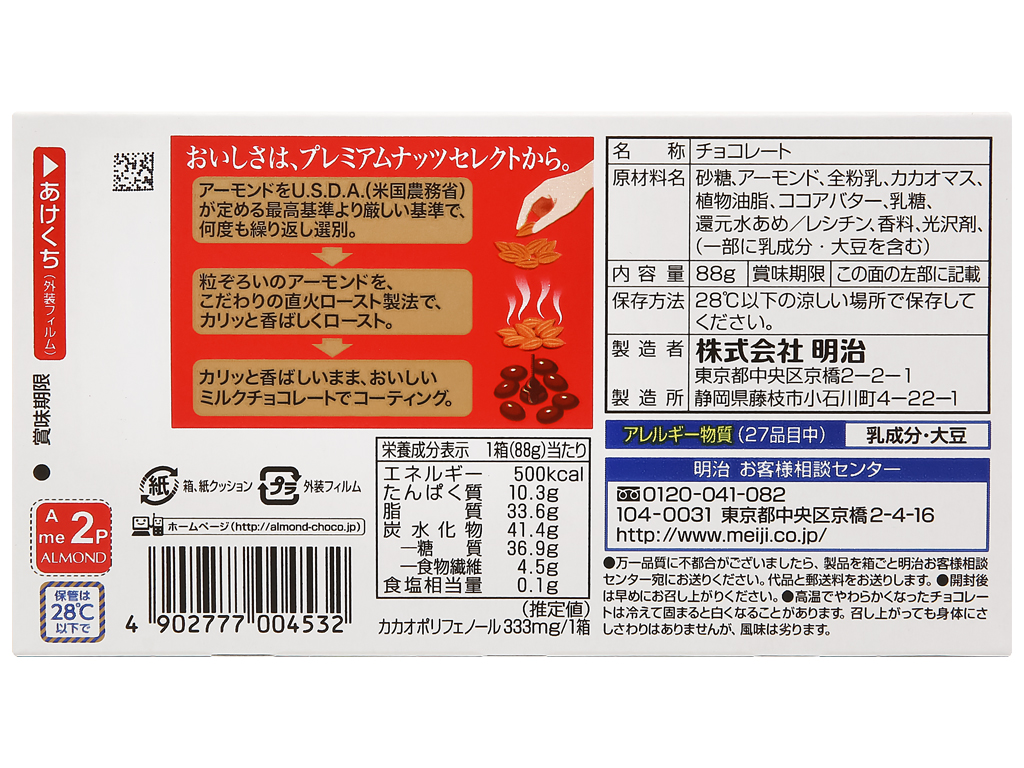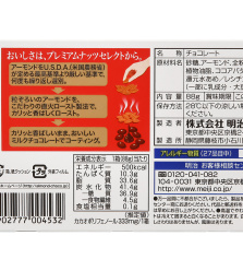 Đường, cacao mass, sữa bột nguyên kem, bơ cacao, hạnh nhân, chất nhũ hoá (lecithin đậu nành), hương liệu.