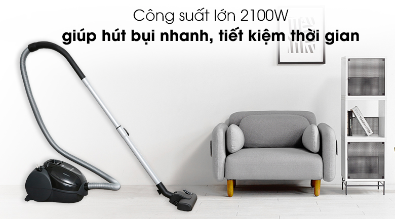 Công suất 2100 W, máy hút bụi nhanh, tiết kiệm điện năng.