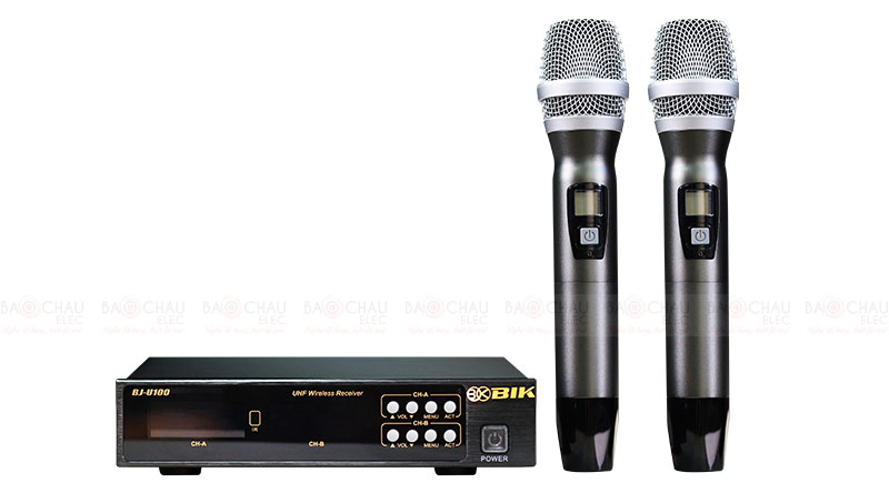 Micro không dây BIK BJ-U100 chuyên dụng cho nhu cầu karaoke gia đình, karaoke kinh doanh, sân khấu, hội trường, sự kiện,...