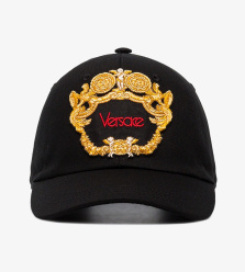 Mũ Versace Black Blasone Baroque Embroidered Cotton Cap Màu Đen