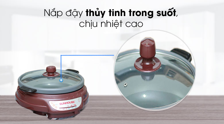 - Nắp đậy:Thủy tinh trong suốt, chịu nhiệt cao