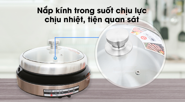 - Nắp đậy:Thủy tinh trong suốt, chịu nhiệt cao