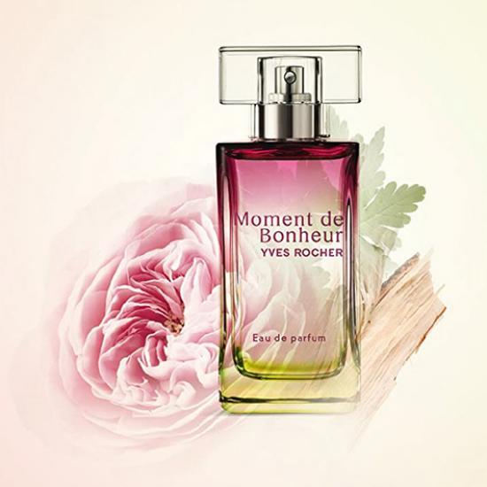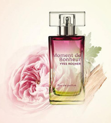 Nước hoa Yves Rocher Eau de Parfum Moment De Bonheur với thành phần chiết xuất từ các thành phần hoa hồng Centifolia, tinh dầu hoa phong lữ, gỗ thông tuyết,hoắc hương và cây kim ngân hoa mang đến cho bạn hương thơm không quá ngào ngạt mà thanh nhẹ, tinh khiết, tạo cảm giác thư giãn, vui tươi.