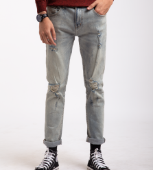 QUẦN JEAN RÁCH ỐNG DÂY KÉO QJ1668 MÀU XÁM XANH
