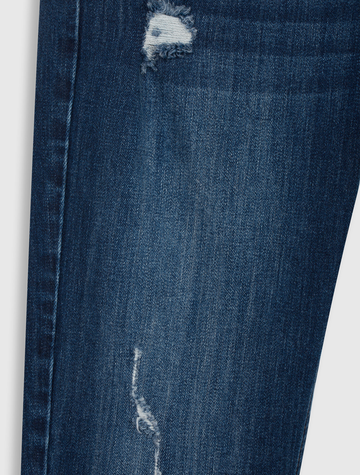 Dáng slim fit, cạp thường, cúc cài, khoá kim loại