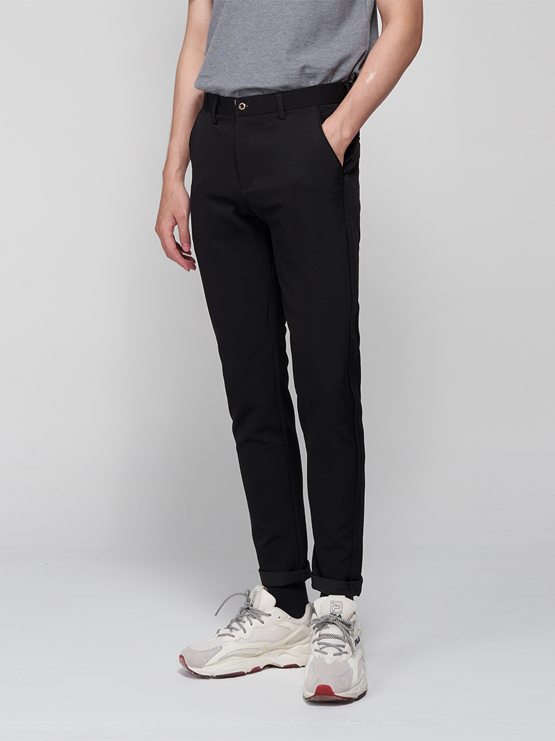 QUẦN TÂY PHỐI DÂY DỆT QT014 MÀU ĐEN