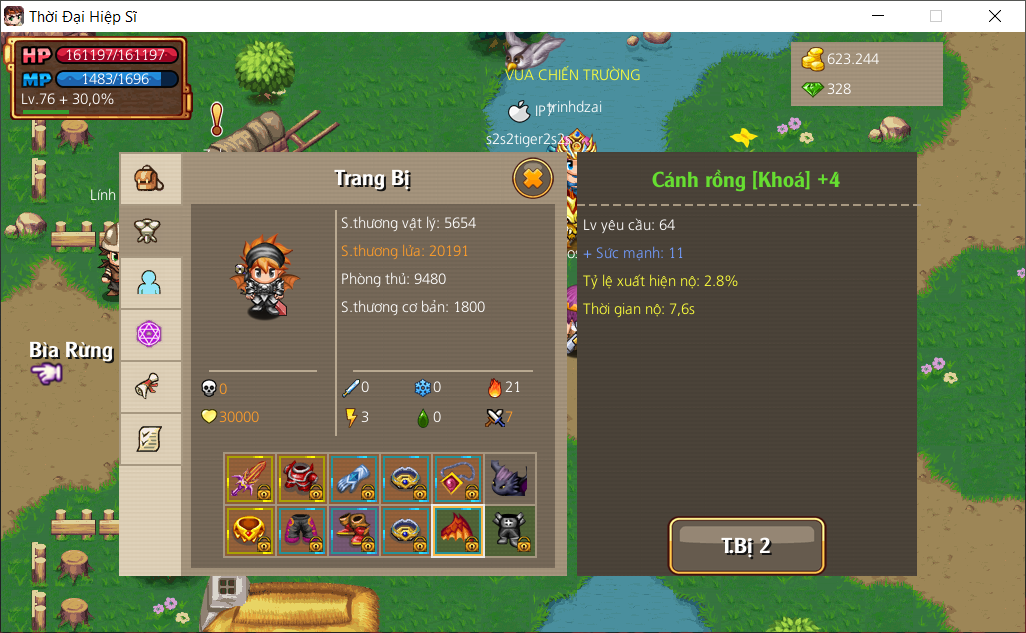 NỔI BẬT: CƯỠI SÓI 1 TỈ, CHUYÊN SĂN BOSS & KHU 6, VK +13 ĐỒ 12 13 KHẢM OKE, DƠI LV11 CS 36 TL, MĐ +6 2D STL, 26Đ TẶNG NGỌC, 110 HS, MAX HÀNH TRANG, 17 VÉ PB, NHIỀU NL MĐ, CÒN 328 NGỌC