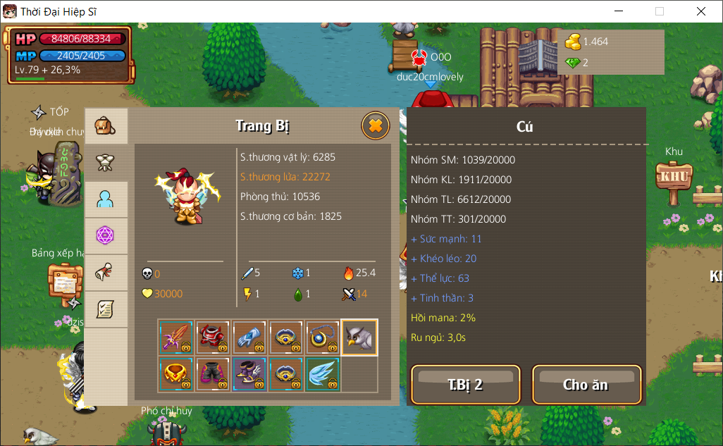 NỔI BẬT: VK +12 ĐỒ 11 12, CÁNH +5 3% NỘ +12 TL, CÚ CS 63 TL, MĐ +6 2D STL % MÁU, 7Đ TẶNG NGỌC, 2120 HS, 41 TG, NHIỀU NL MĐ, MAX HÀNH TRANG, 3 TÓC 100 NGỌC + 2 TÓC 50 NGỌC