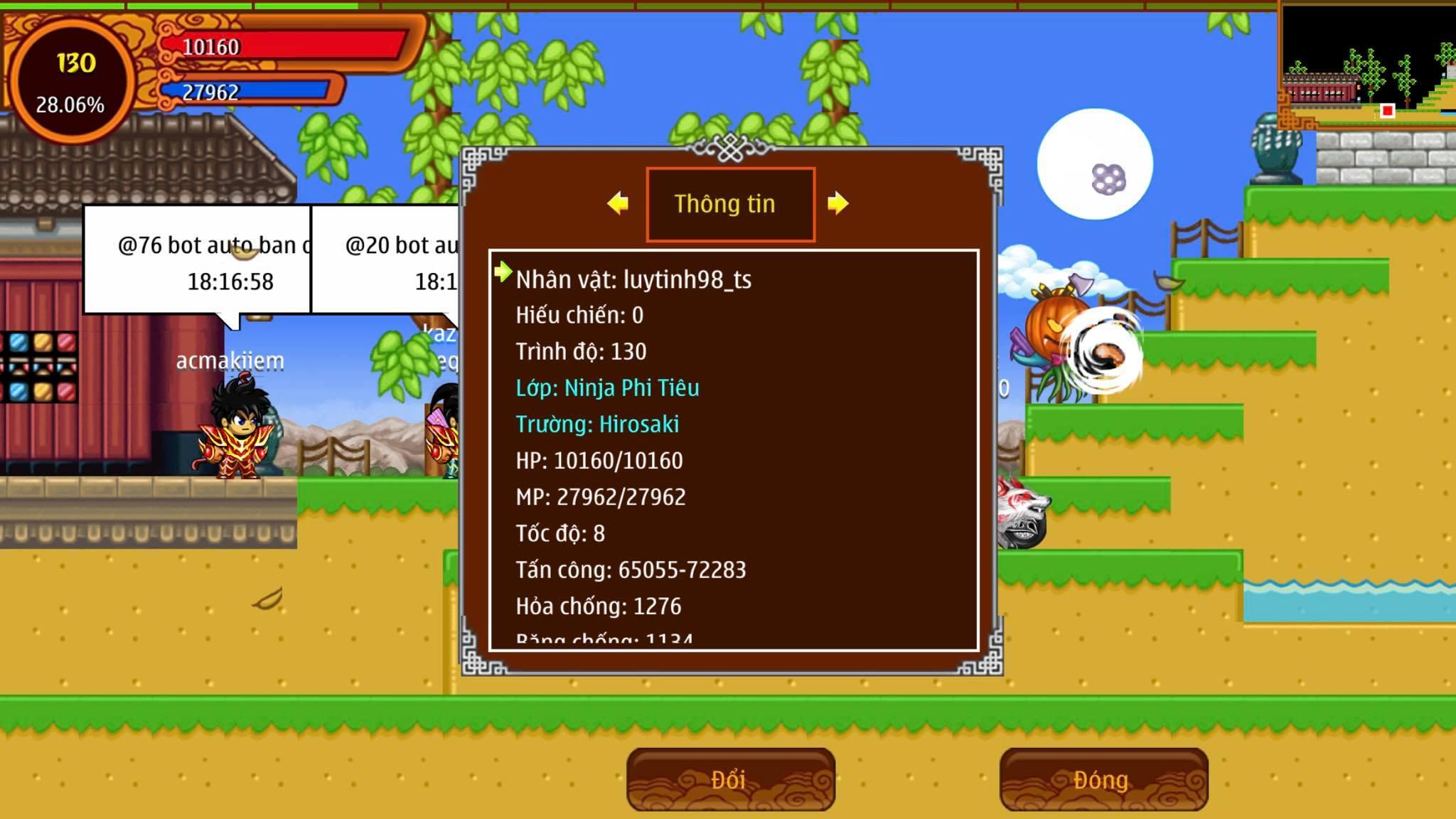 THÔNG TIN: TIEU 130 SV3 HỌC 8STN 1SKN SX LV100 5SAO TL6666 MAX SKIL910X (NICK KO BÁN TRẢ GÓP, KO TRAO ĐỔI VỚI NICK CỦA KHÁCH)