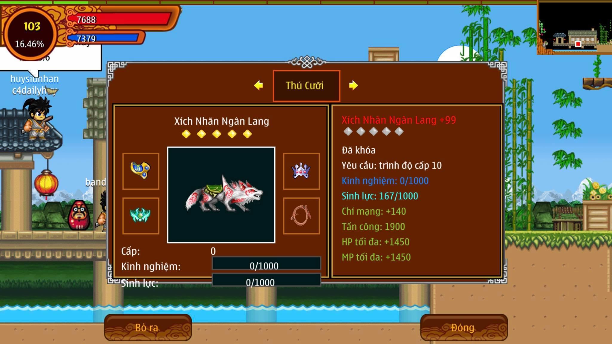 THÔNG TIN: KIEM 103 SV5 VK MCS HỌC 8STN 10 BÁNH BH 2B PL SÓI LV100 5SAO TL3655 CÒN 307M YÊN CÓ SKIL10X (NICK KO BÁN TRẢ GÓP, KO TRAO ĐỔI VỚI NICK CỦA KHÁCH)