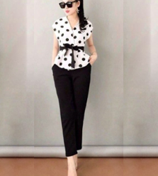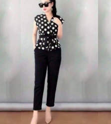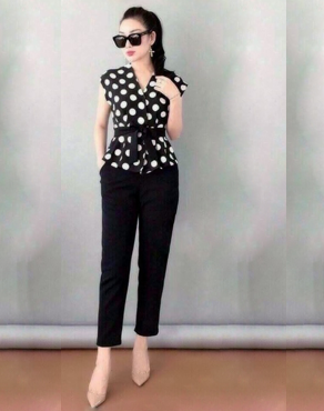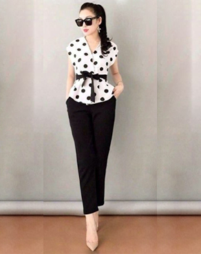Set bộ thiết kế áo chấm bi cột eo xinh