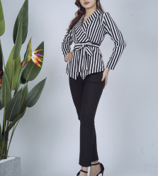 Set bộ thiết kế áo kẻ sọc tay dài quần tây cao cấp