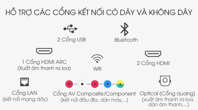 - Cổng xuất âm thanh:Cổng SPDIF (Digital Audio Out), HDMI ARC (hỗ trợ eARC)