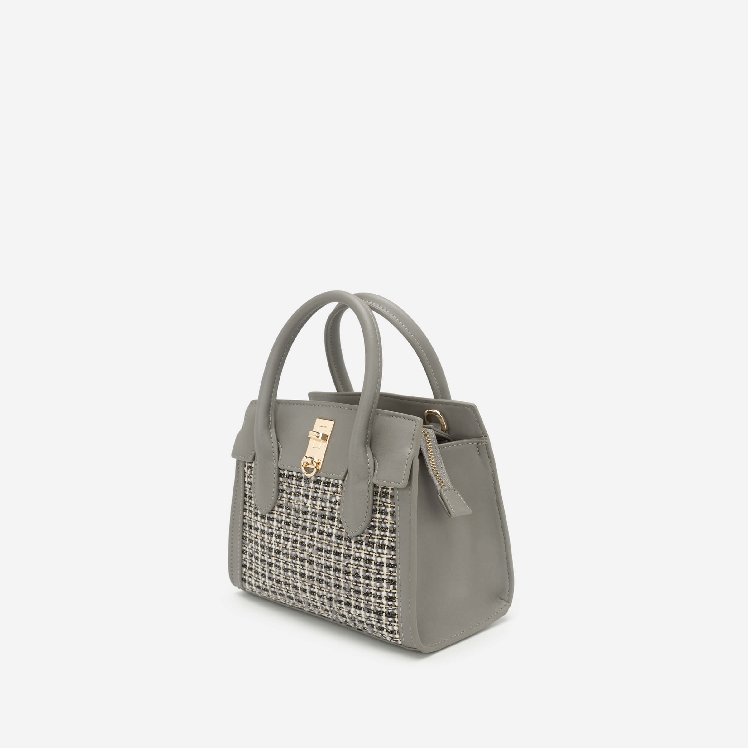 Túi Xách Tay Phối Tweed Viền Chỉ Nổi - SAT 0241 - Màu Xám