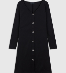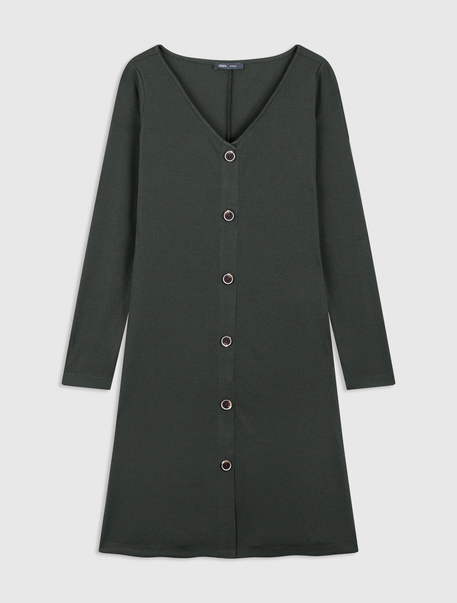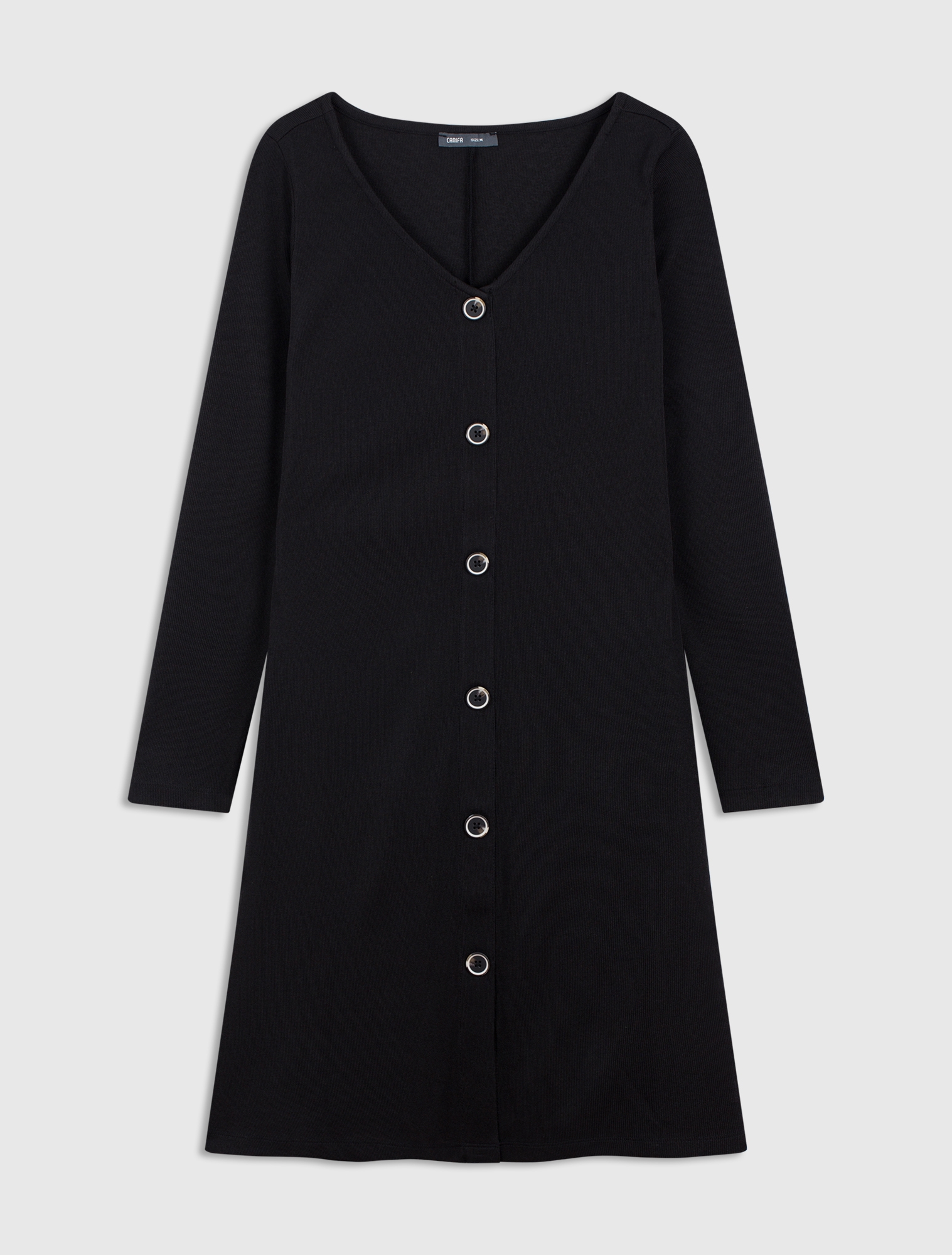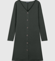 Phom slimfit, dáng xòe, cổ tim, tay dài.
