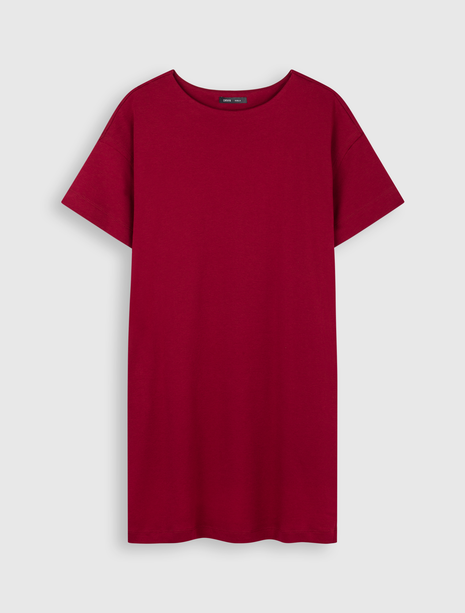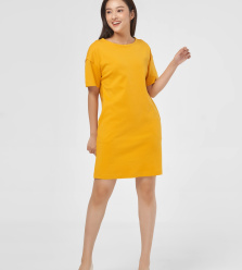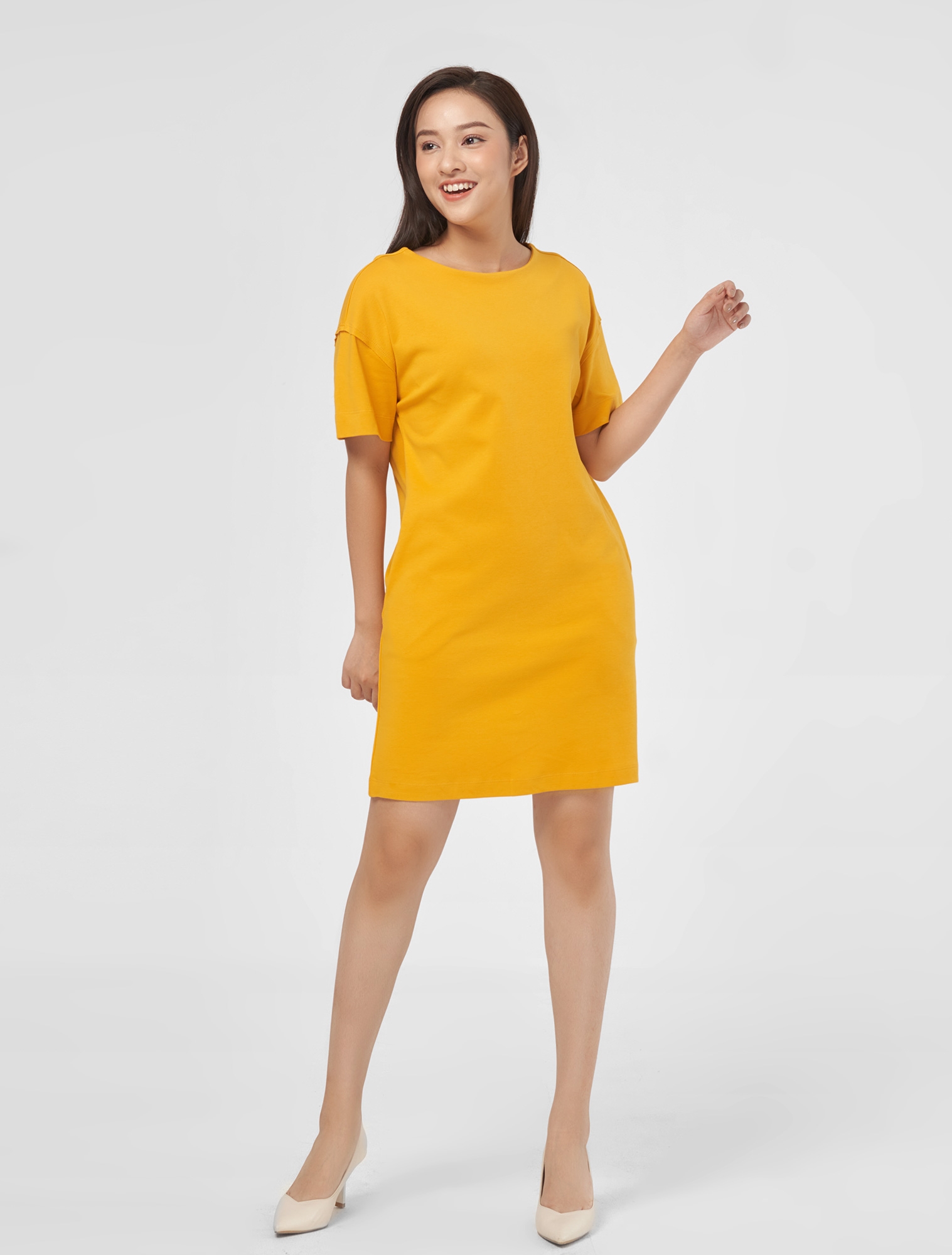 Váy liền dáng suông, dài, cổ tròn, tay ngắn.