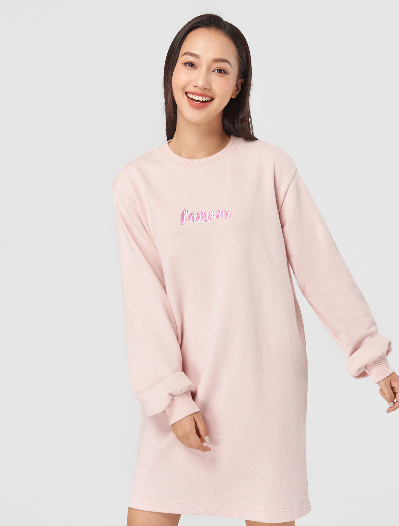 Dáng shift suông, cổ tròn, tay dài, xẻ 2 bên